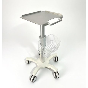 รถเข็นเคลื่อนที่อลูมิเนียมอัลลอยด์เครื่องตรวจคลื่นไฟฟ้าทางการแพทย์พร้อมตะกร้าเหล็ก